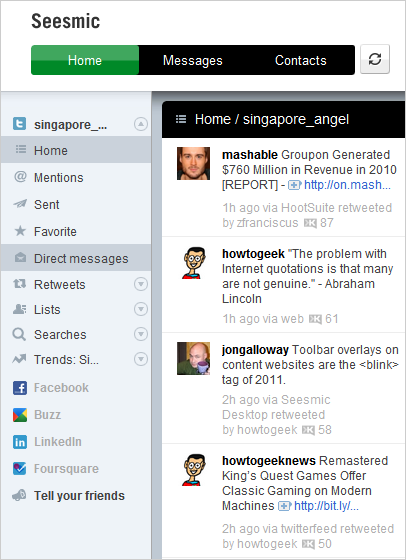 Imagínate que puedes entrar a una web donde puedas ver de vista global todas las cuentas de redes sociales que tienes y poder ver lo que hacen tus amigos de Facebook y Twitter desde la misma página. Para esto, existe Seesmic, una aplicación para Google Chrome que te da acceso a la gestión de tus cuentas de redes sociales desde una interfaz simple y fácil de interpretar.