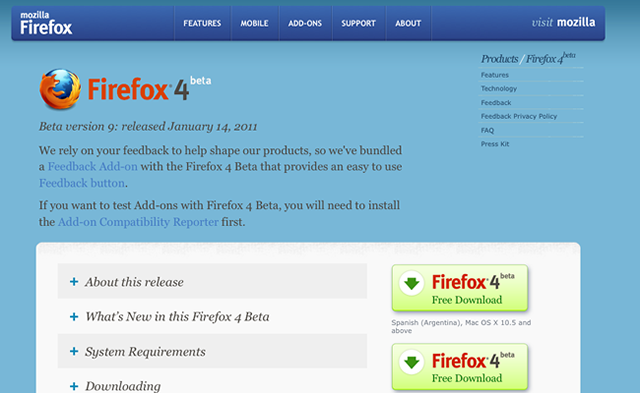 Si quieres descargar la versión Beta 9 de Firefox 4.0 para probar como son los cambios, puedes descargarla desde la página de Mozilla.