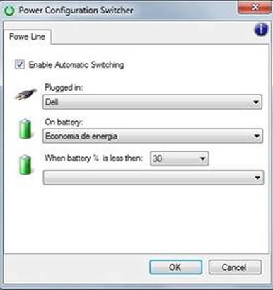 - Automática: La aplicación cambia las opciones de energía según el estado de la batería. Cuando está al 100% da total uso del ordenador. Cuando baja del 50% toma algunas medidas para ahorrar energía. Cuando se encuentra al 10% reduce al máximo el gasto de energía.