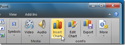 Después de instalar Oomfo, esta útil herramienta, integrará en el menú de gráficas de PowerPoint, un nuevo icono, en el que, al pulsarlo, se desplegará una nueva ventana, donde podremos crear las tablas.