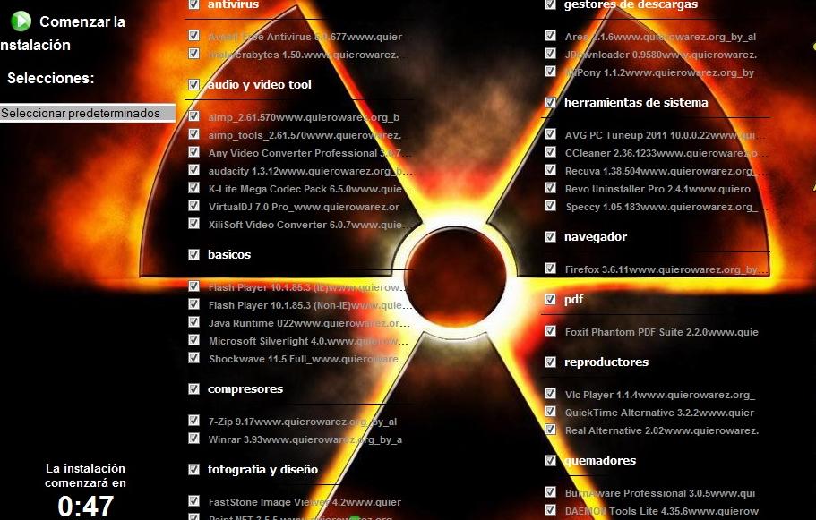 Amigos de quierowarez, este es el primer wpi echo para los user de QW, este wpi fue copilado integramente por mi. Como todo primer proyecto estoy muy contento de haberlo terminado, espero que lo disfruten y no duden en comentarme los defectos y las virtudes, espero que la seleccion de soft que hice sea de su agrado, la mayoria de estos software integrados, se instalan sin ninguna intervencion del usuario.